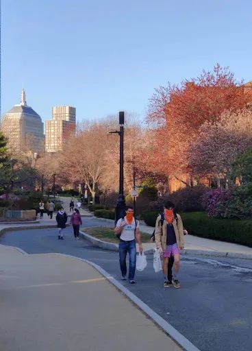 波士顿街头,年轻人戴着时髦的自制面巾口罩。
