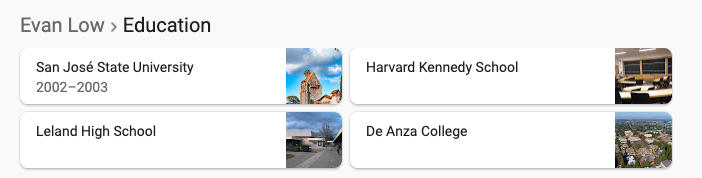 硕士去了哈佛的肯尼迪学院 (公共管理专业第一)。他发言就说,学生也可以去社区学院,州立大学,然后成才。(知识点,加州社区学院,加州州立大学,详细内容请关注后续文章)
