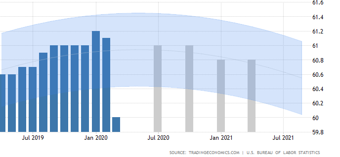 可以看到,直到2020年的一月,美国的就业率都是在一直攀高。川普自己说的一个政绩,就业率历史最高,失业率历史最低,不是吹出来的。