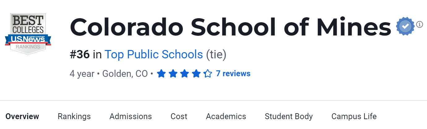在2024年USNews美国大学排名中,科罗拉多矿业大学排名第36。