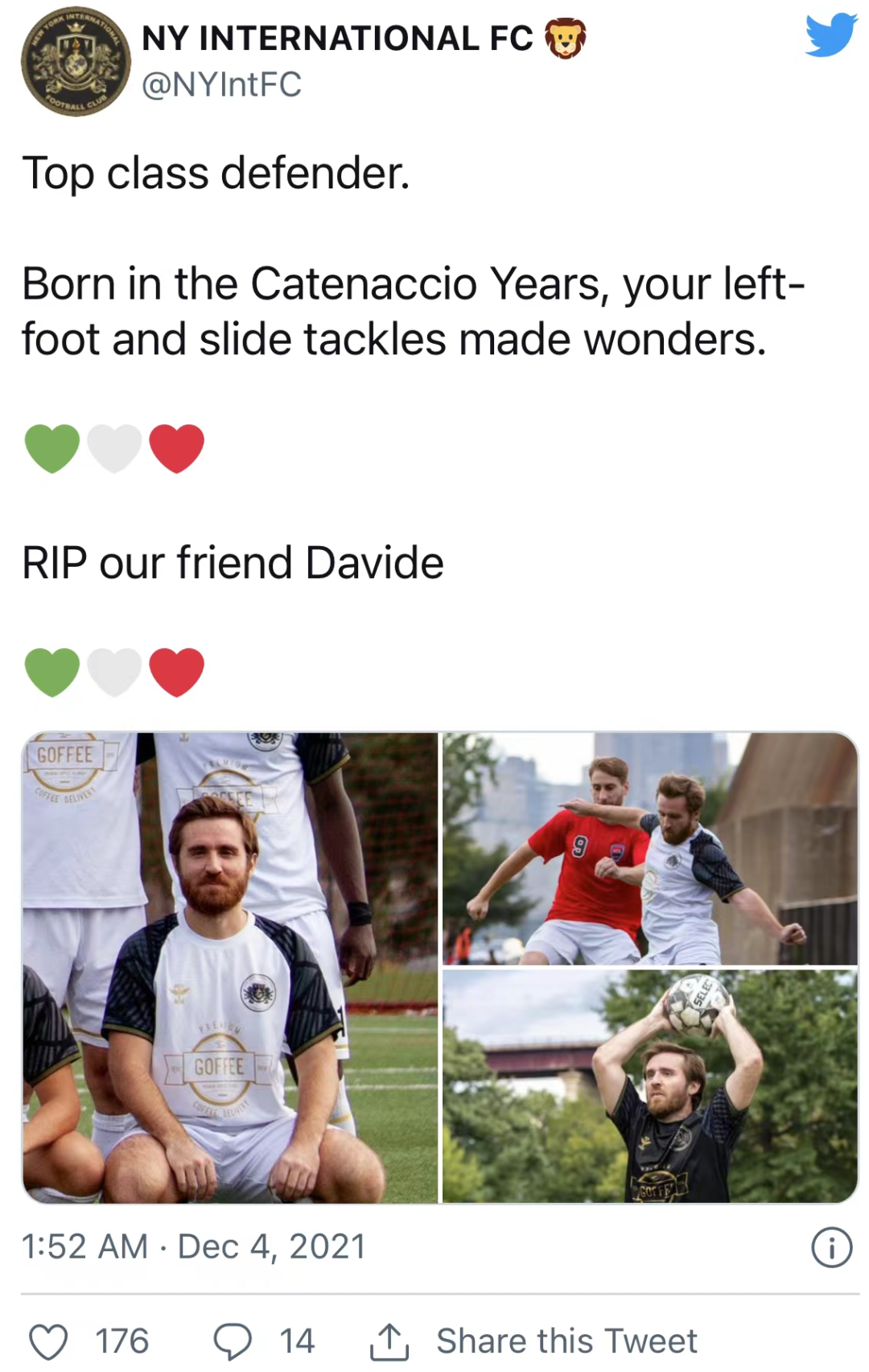 在纽约国际足球俱乐部为Giri发布的悼文中,他曾经的队友们为他饱含深情的写道: