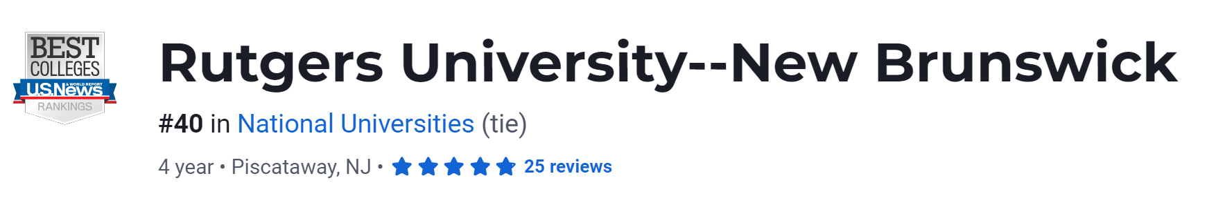 罗格斯大学是美国最早成立的第八个高等教育机构,也是美国独立革命前的九所私立殖民地学院之一。学校由三个校区组成,主校区位于新泽西州新布朗斯维克市(New Brunswick),分校区位于纽瓦克(Newark)和肯顿(Camden),三个校区共有来自超过125个国家的70876名在校学生,提供跨175个系别、29所学院的超过150个学士学位、100个硕士学位以及80个博士学位。