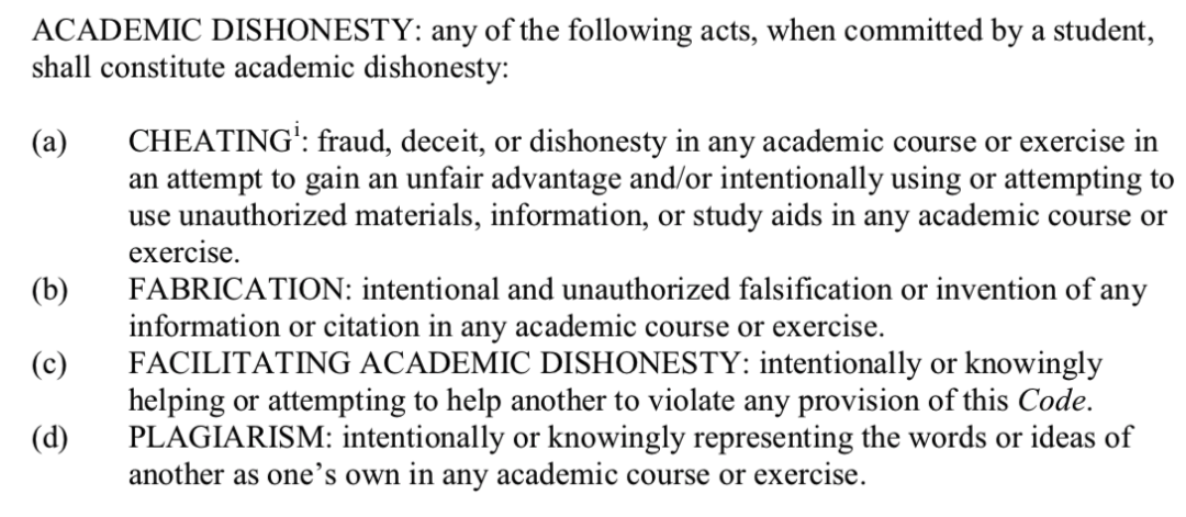 马里兰大学对学生的学术诚信很是重视。因此,学术不诚信的情况在马里兰大学是会面临很严重的处分的。马里兰大学对于学术不诚信的行为的定义包括但不限于:cheating, fabrication, facilitating dishonesty, 以及plagiarism. 而对于以上各类的学术不诚信行为,一经确认,学校会根据学生过往的学术诚信记录给予相应处罚。