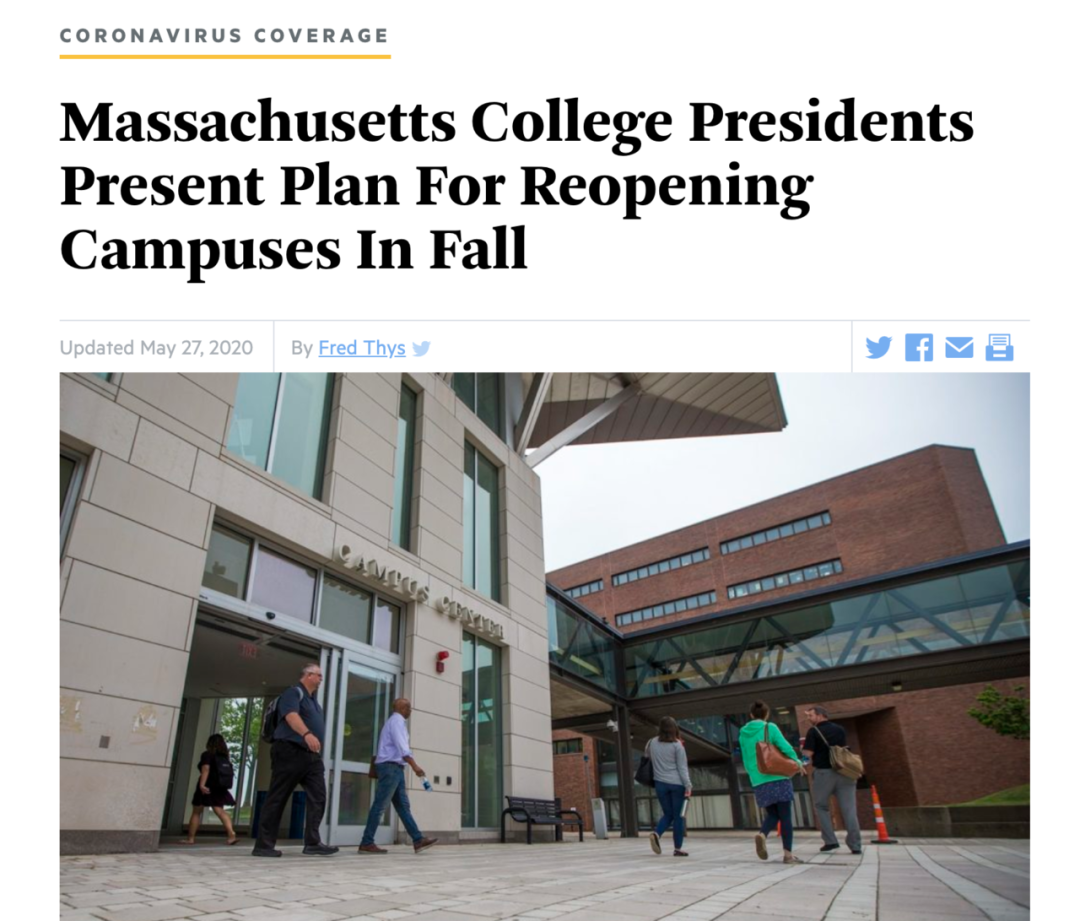 而位于马塞诸塞州的14名大学校长也提出了建议,在新冠疫情下重新开放校园的四个阶段计划: