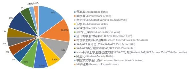 而本次Niche学术榜单的排名指标权重是由?面几个因素共同组成的: