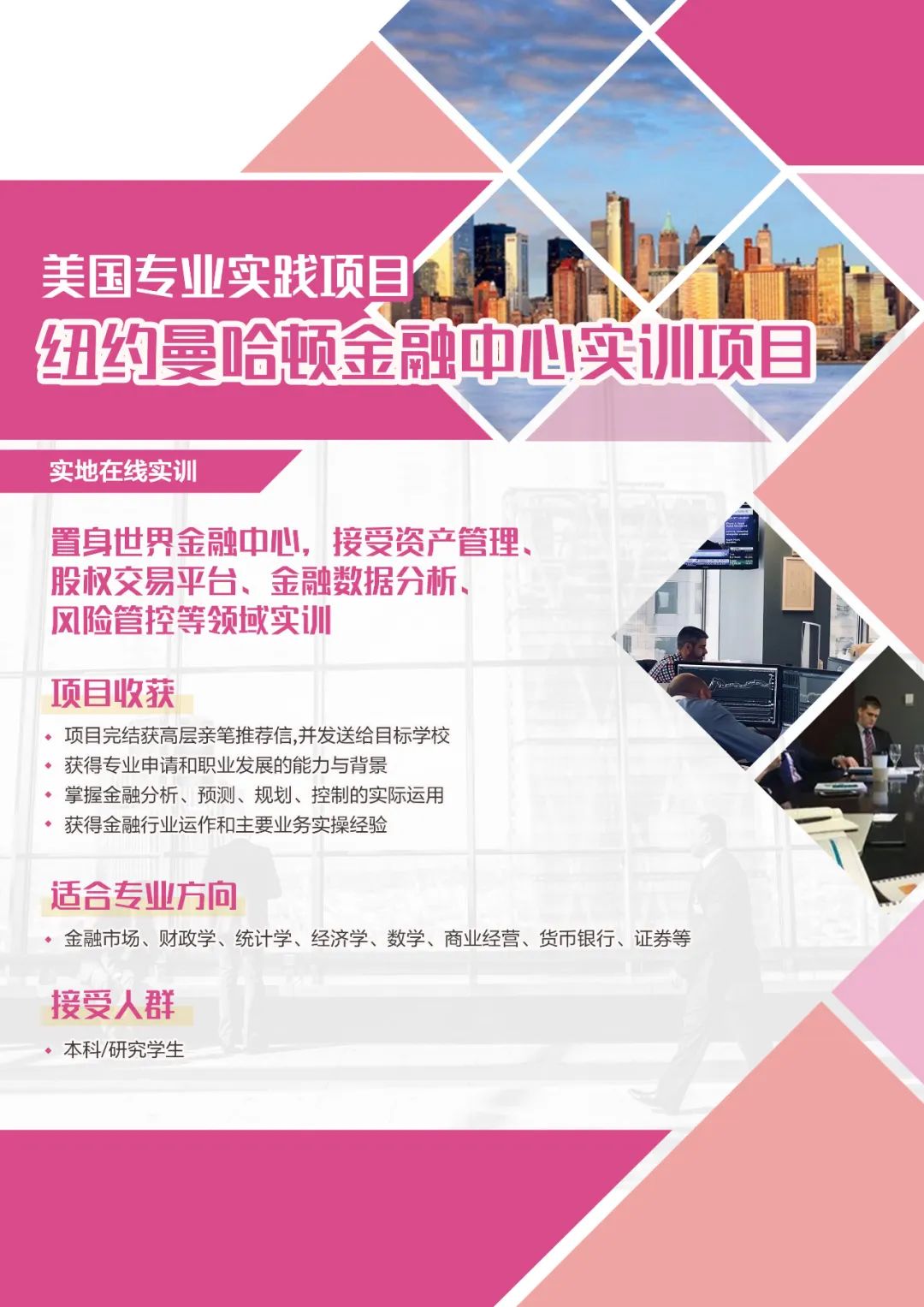 -走进世界金融中心,进行投资银行、股权交易、金融数据分析等领域实践