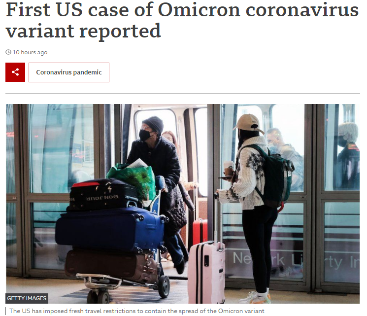 然而入境限制执行了还不到一周,美国防疫政策就被CDC通告打脸了。美国首例Omicron毒株感染病例也出现了……