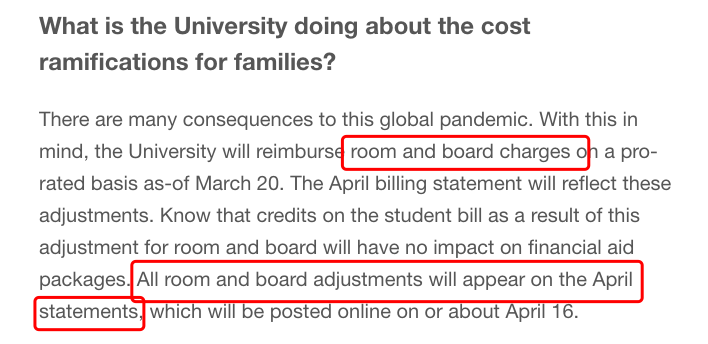 罗切斯特大学表示会针对学生们的住宿费和餐食费发起退款,并且表示大家四月就会收到这笔钱。
