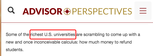用Advisor Perspectives的说法来说,与其说大学开始给学生退钱了,还不如说是“最有钱的那批大学开始退款了”。