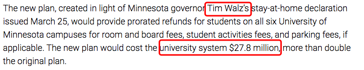 大部分开始退款的学校,要么是退款费用占比学校总收入不多,像哈佛大学,这次涉及到的退款费用仅仅占总收入的4%;要么就是公校得到了所在州的大力支持,明尼苏达大学正是得到了州内的大力支持。