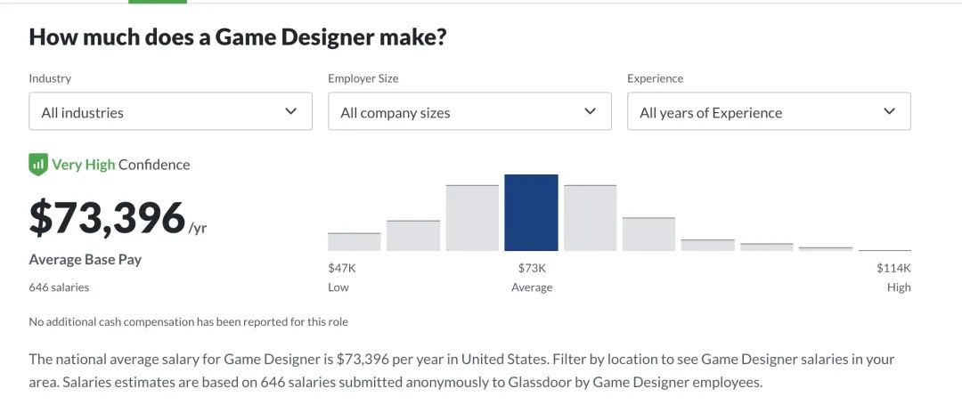 资料来源:https://www.glassdoor.com/Salaries/game-designer-salary-SRCH_KO0,13.htm