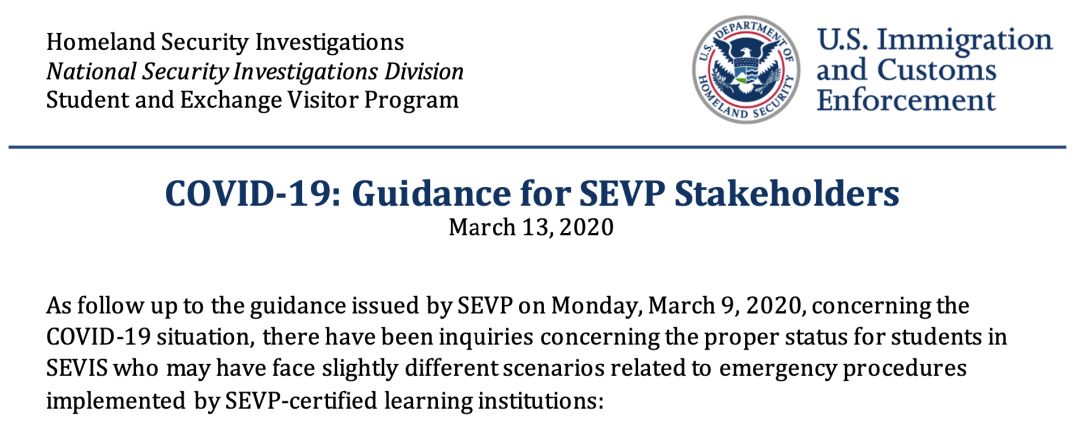 根据SEVP于2020年3月9日星期一发布的有关在COVID-19的情况下,有人询问过以下情况:SEVIS可能面对与紧急程序有关的稍微不同的情况由SEVP认证的学习机构实施。