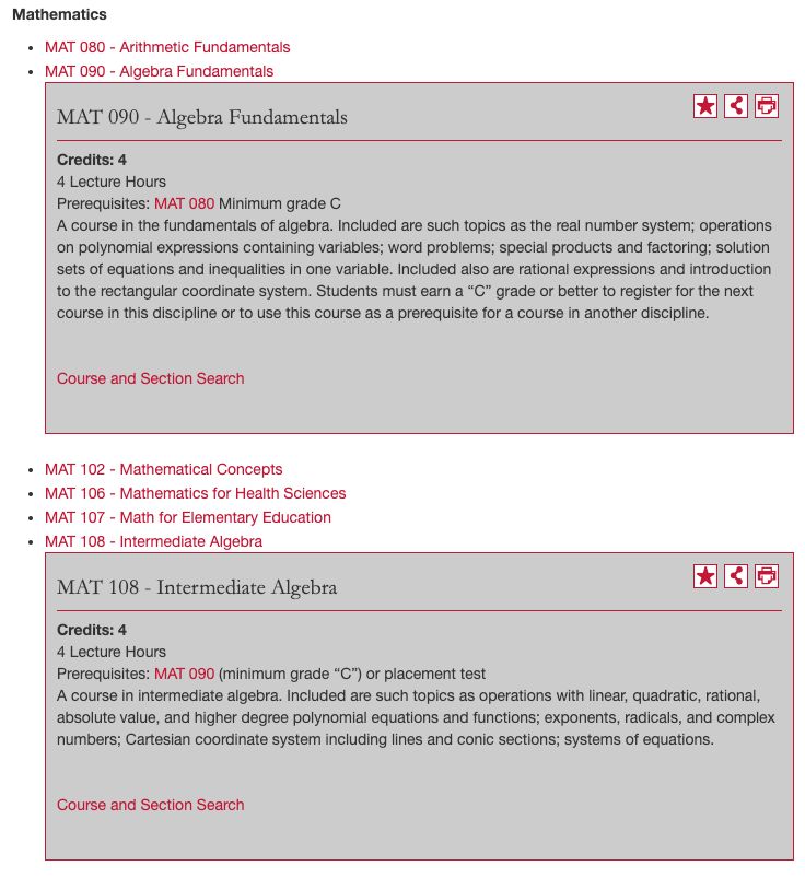 现在孩子开始学的是数学MAT 090, 之后要修完课程108,142,201,202,251直至全部大一和大二的数学课程,一共六门课。