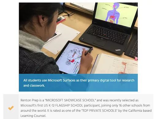 西雅图的这所Renton学校被微软认可,被纳为微软的示范院校之一。