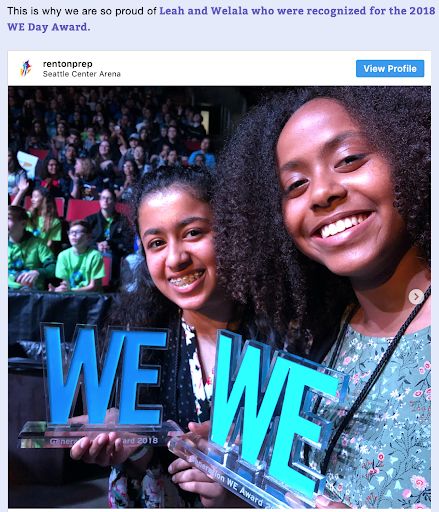 这是两个学生得到We Day Award 大奖的照片。该比赛要先通过地区赛的海选才能进入全国赛。