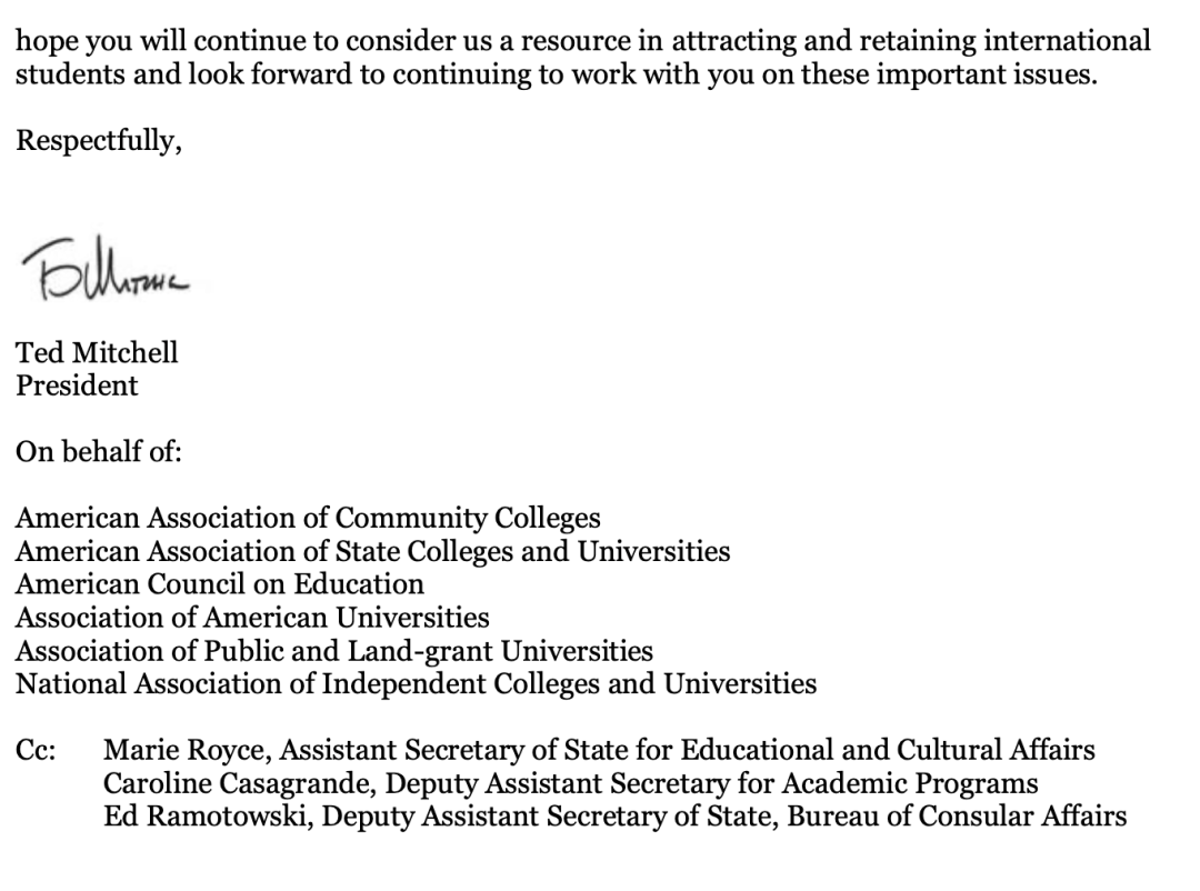 这封信如果被国务卿通过,将会是对国际学生的重大利好。