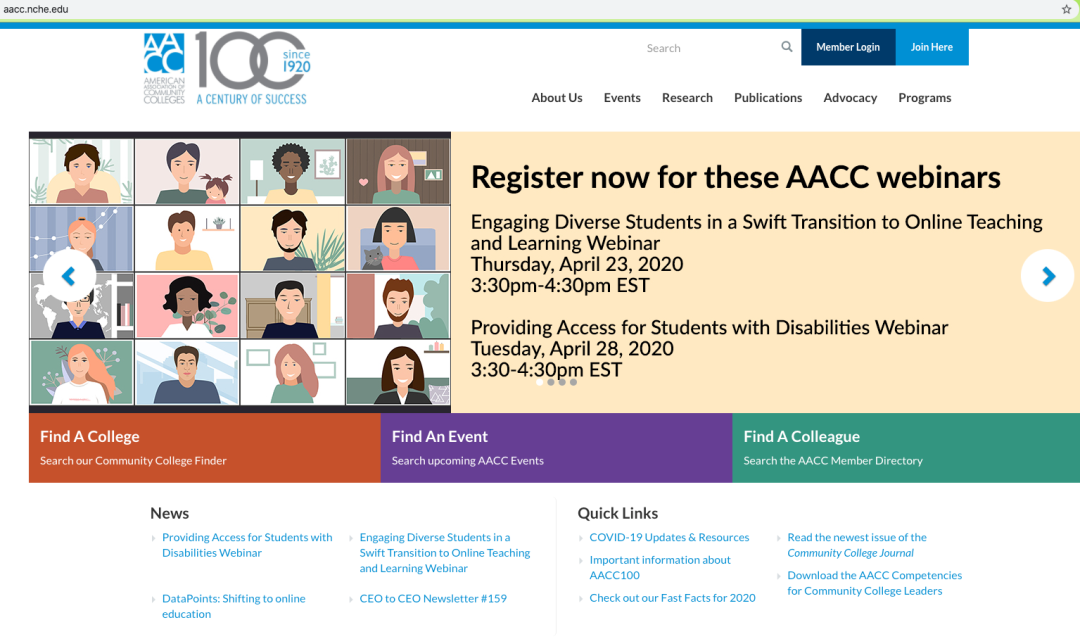 美国社区学院协会 – American Association of Community Colleges, AACC,包括了美国1100所社区学院。社区大学是美国高等教育最主要的部分。AACC的在校学生数目,比其他几个协会大学的学生数目总和还要多。