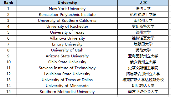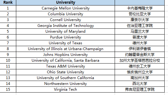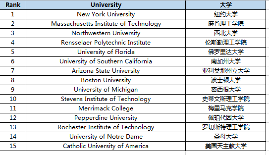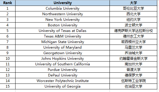 今年前10的院校与去年一致,名次稍有变化:NYU、马里兰稍有下滑,西北大学跻身Top3。