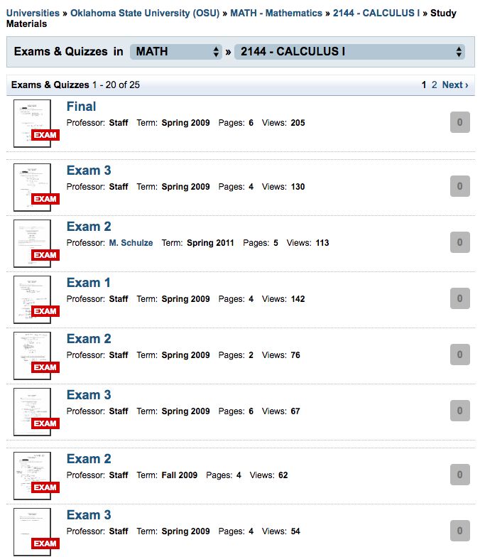 这是俄克拉荷马大学数学2144这门课,自2009年以来的历届考古题,搜到就可以下载。