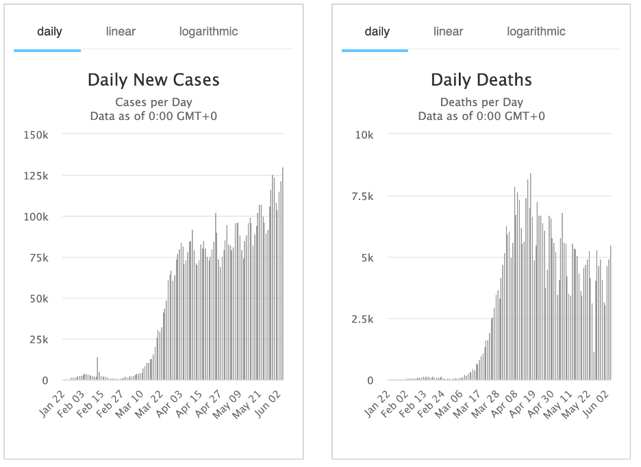 截止到美国时间6月6日上午10点,美国确诊人数1,936,967人,死亡人数110,708。