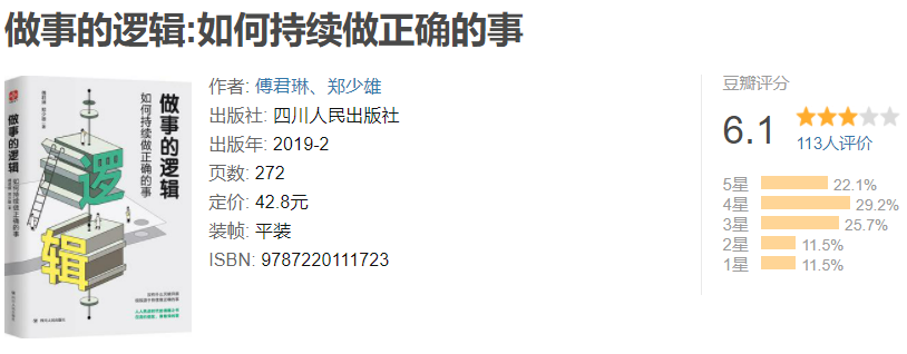 在同学们的印象中,郑同学也一直都优秀而上进,甚至称得上学术研究的榜样。2019年他还与傅君琳共同出版了一本名为《做事的逻辑:如何持续做正确的事》的书籍,豆瓣评分6.1分。