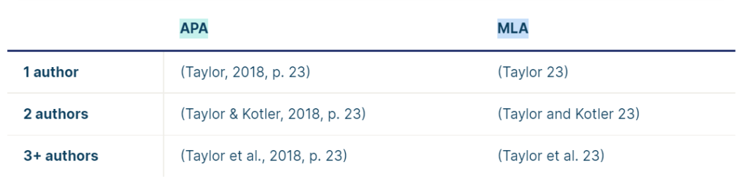 MLA 则要求使用“and”。对于三位及以上作者,两种风格都是列出第一作者,然后是“et