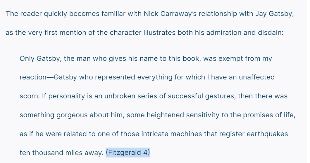 MLA 中,整段引用格式用于引用超过四行的散文或超过三行的诗句。
