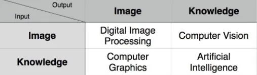 图像处理DIP:输入图像,对图像进行预处理(如灰度化、平滑、增强等),比如传统的输出图像,用PS等图片处理软件来精修图片等;