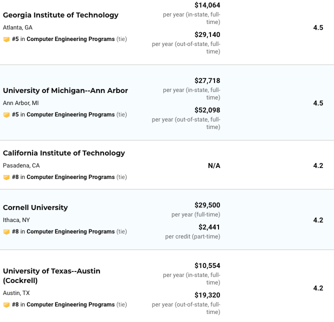 推荐院校:USC、CMU、麻省理工大学、斯坦福、UCB等