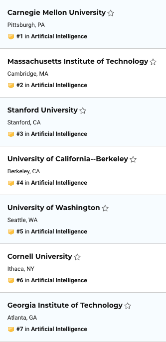推荐院校:卡内基梅隆大学、麻省理工大学、斯坦福、UCB等