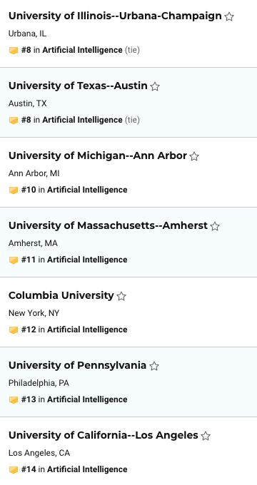 推荐院校:麻省理工大学、斯坦福、UCB、UIUC、CMU等