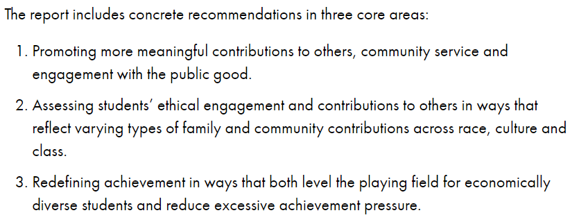 根据哈佛教育学院联合80多所名校发布的教育改革报告中写道:大学申请将会更加关注申请者对社会的贡献,其中更是通过官方网站强调了 课外活动 的重要性,以及对录取的影响。