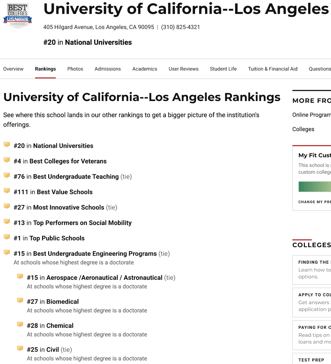 想留学美国的家长都知道,加大洛杉矶,UCLA,是连续两年美国公立大学排名第一的大学。也是首次带领着一大批公立常青藤踏入了美国的前20名的学校。UCLA去年全美排名第19名,今年是第20名。