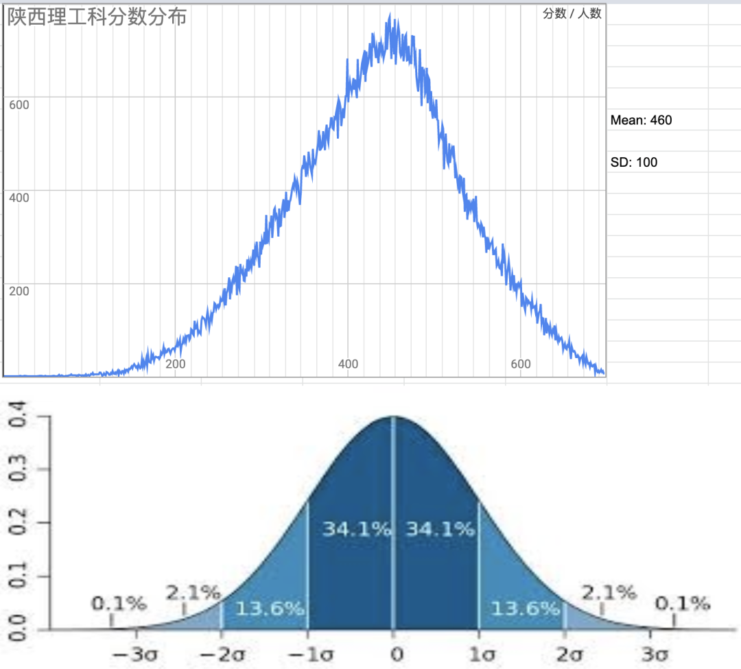 也是一样,360分~560分区间的学生占总考生的大约70%。