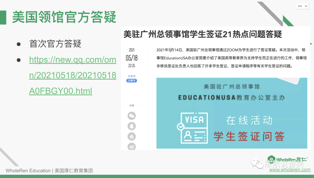感谢各位家长同学观看5月29日的《赴美签证政策更新解读》讲座,本次讲座的特邀嘉宾张老师是厚仁签证中心的专家,两位老师携手,为大家解读签证政策相关更新,助留学生理清现状,更好准备赴美签证。