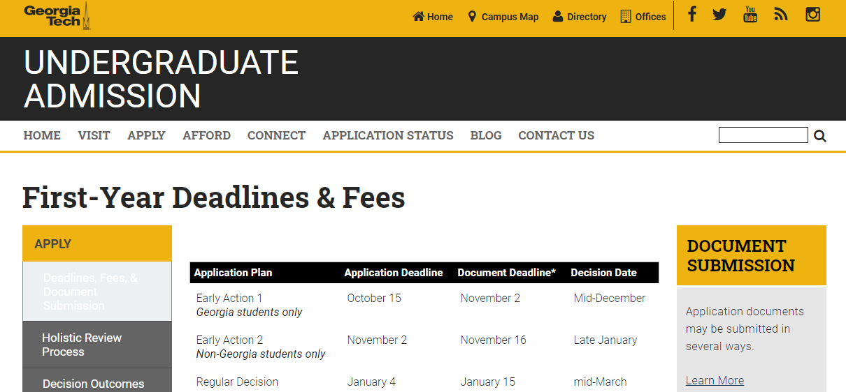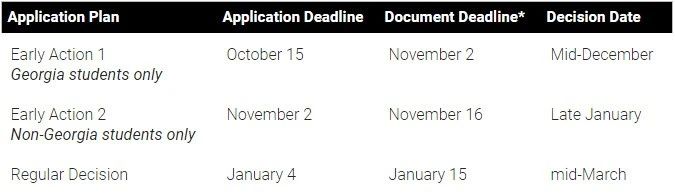 佐治亚理工学院是位于佐治亚州亚特兰大的一所公立研究型大学和理工学院,它是佐治亚大学系统的一部分。学校专门为州外学生新增了EA 2申请,于11月2日申请截止,佐治亚州居民早申请 EA 1于10月15日截止。佐治亚理工常规申请截止日期为1月4日。当然,州外学生不能申请EA 1。具体时间如下:
