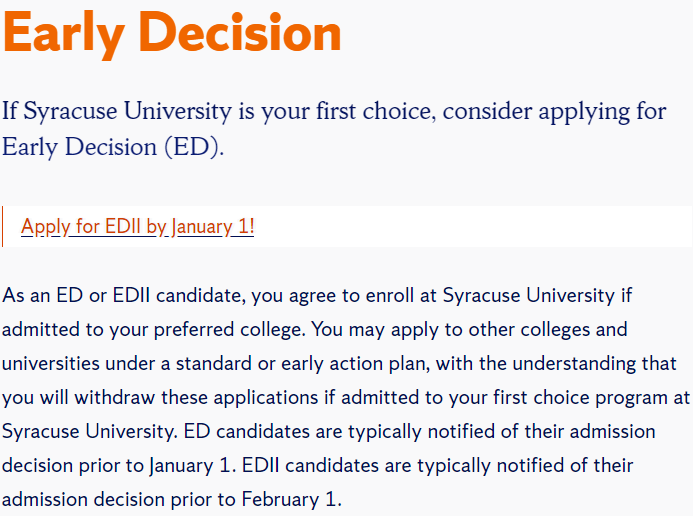 可以看到,ED 2的申请截止日期和通知日期跟RD基本重叠。那么就需要大家注意一个问题,并不是所有人都适合ED2。通常ED 2放榜时间会比RD 早,大多在2月中旬,一旦录取就必须撤回RD申请,有可能会丧失录取更好学校的机会