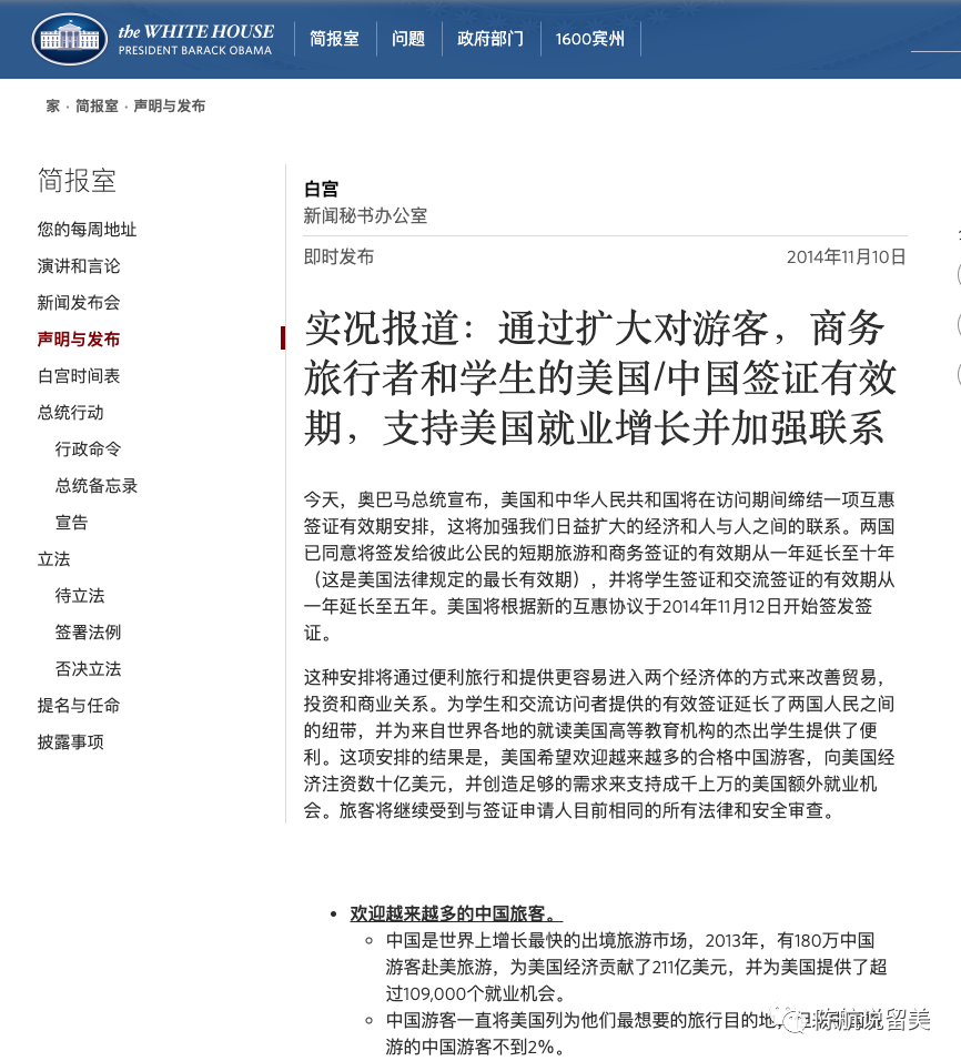 中国和美国在 2014 年达成协议,允许中国赴美人员的签证最长到 10 年。