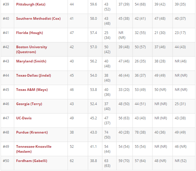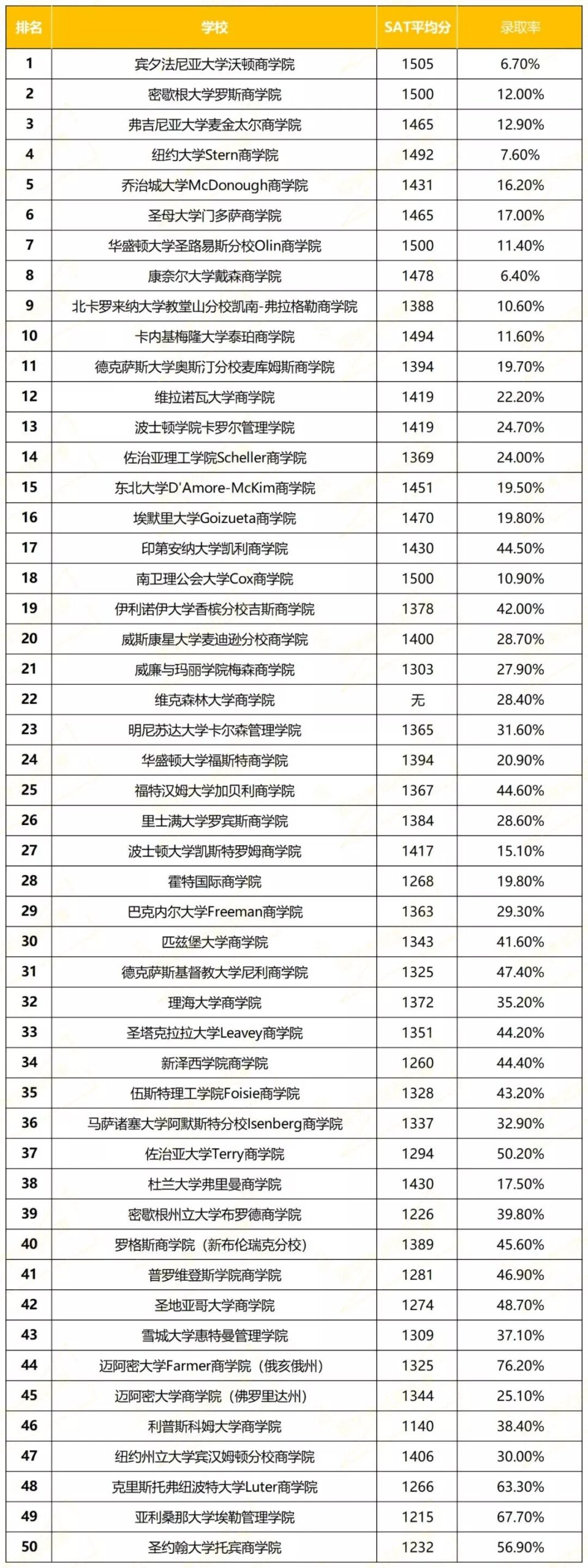 而Poets&Quants每年除了会对本科商学院进行排名外,同时也会收集这些商学院录取学生的平均SAT分数。