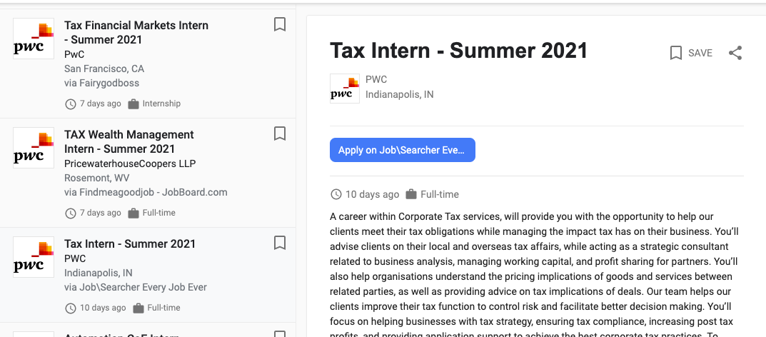 PWC等企业也都纷纷开放了2021年summer的intern,根据发布的时间也不难看出是10天前,所以这赤果果的在揭示着春招的大概率提前,同学们如果有目标的岗位和职位,务必要提早关注和申请。