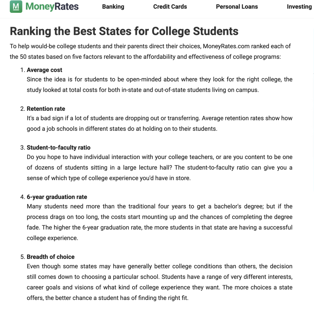 近日,MoneyRates.com网站于2020年对大学生表现最好的州进行的一项研究发现,不同州的大学教育存在明显的差异。该网站根据以下这5大因素对全美50个州进行了排序: