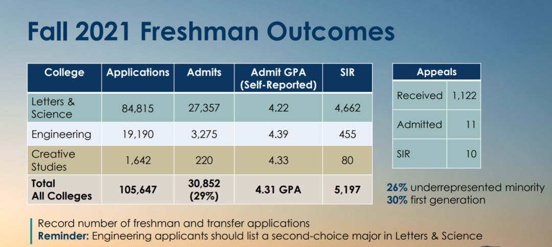 2021年UCSB Freshman录取数据