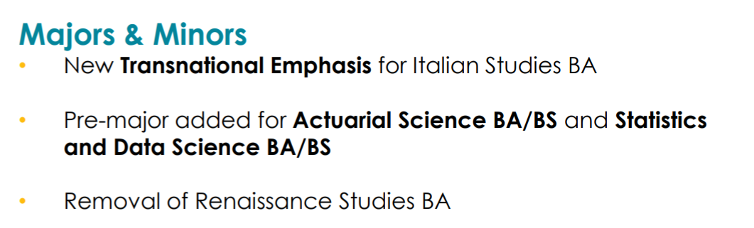 - 文理学院(College of Letters & Science):不录取具体专业,如果申请该学院的专业,将直接录取进入学院,所以“未定专业”(Undecided Major)是被申请人选择的最多的专业选择;对于文理学院来说,第二专业(Alternate Major)将不被审核;学生录取后在大二结束时可选择具体专业开始专业课学习,舞蹈和戏剧专业除外,这两个专业需要试镜。
