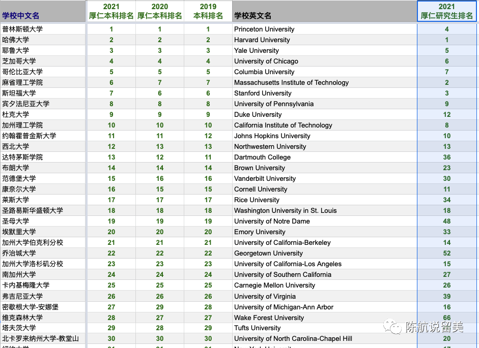 2. 厚仁研究生排名:也叫“国际加权榜单”,主要作为研究生选校依据。