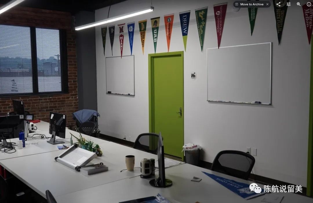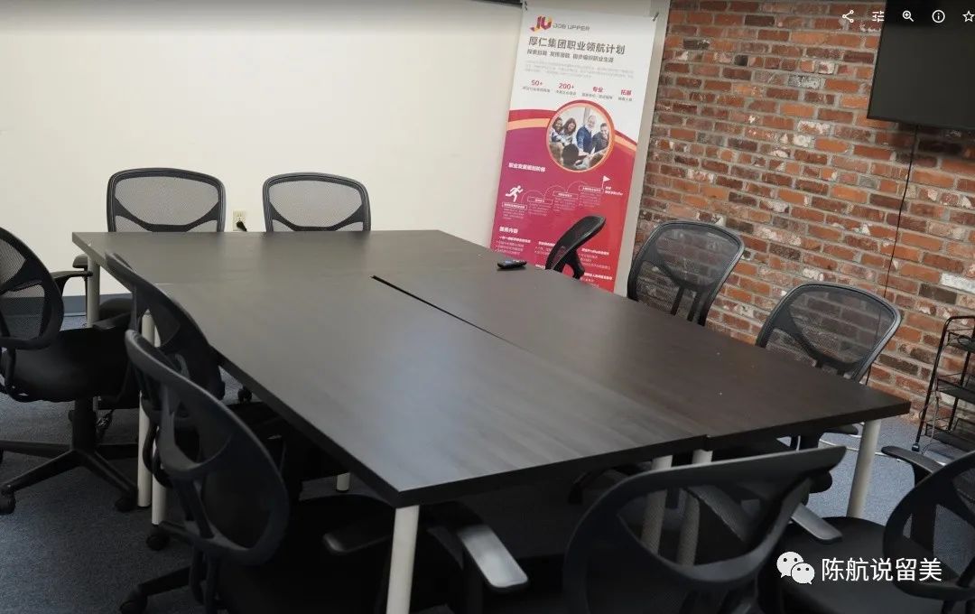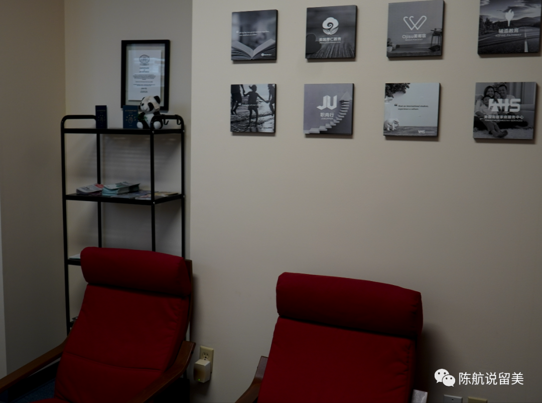 墙上挂的图片,是厚仁集团的几个子公司,包括星空app官方网站手机版,辅道教育 (学术辅导和学术监管),美国寄宿家庭服务中心(寄宿家庭和生活服务),职尙行 (背景提升和就业指导),ReadyAI(青少年人工智能教育)。