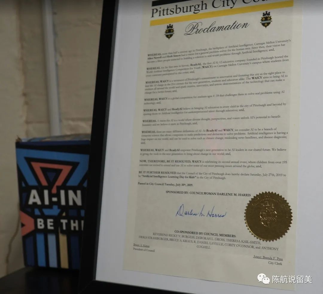 这是去年匹兹堡市议会给ReadyAI举办的WAICY 第二届世界青少年人工智能大赛的贺信。