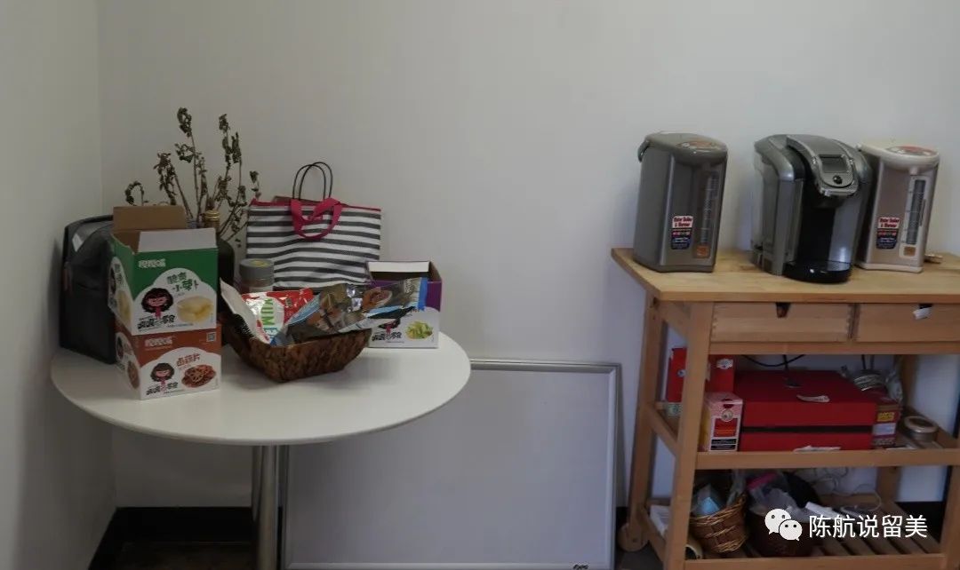 零食和热水,咖啡。我们办公室有很多好茶,都是一些家长送的。
