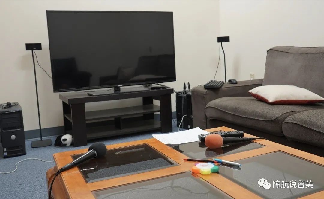 这是卡拉OK的休息室。一些同事周末会来唱歌。这里的音响设备和效果,听说比匹兹堡的两个KTV都要好。