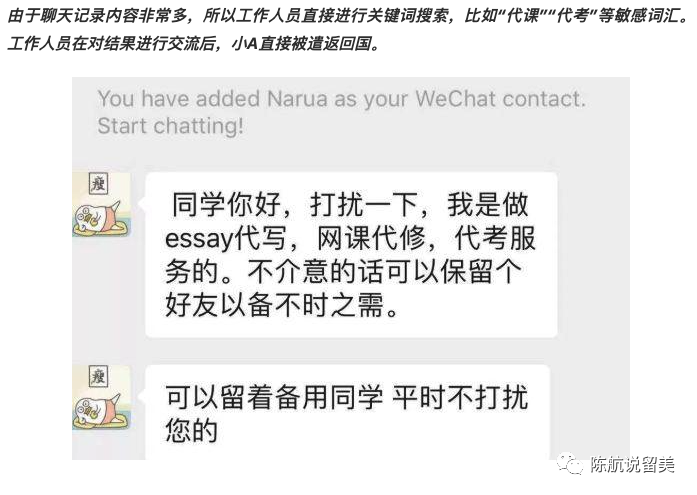 就连代写,代考这些学术不诚信的微信通话记录,如果在海关被发现,都会导致学生被遣返的。