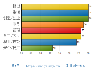 通过测试,可以找到个人的职业代码。比如一个代码为ASI的人,在艺术型、社会型、研究型三方面得分较高,最适合做艺术家、画家、记者等。因此,最为理想的职业选择就是个体能找到与其个性类型重合的职业类型,即“人职协调”。这时,个人最可能充分发挥自己的才能并具有较高的工作满意感。